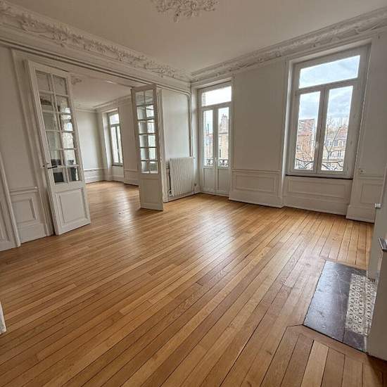 Appartement Nancy 5 pièce(s) 120.01 m2. À LOUER ? Superbe appartement 5 pièces de 120 m² ? Quai Claude le Lorrain, Nancy Idéalement situé au 2? étage d'un bel immeuble de caractère, à deux pas de la gare de Nancy et du centre-ville, ce magnifique appartement de 120,01 m² allie le charme de l'ancien au confort moderne. Il se compose d'une entrée spacieuse desservant un vaste double séjour lumineux de plus de 45 m², avec balcon, cheminées décoratives, moulures, et parquet massif d'origine. La cuisine séparée, aménagée offre un espace fonctio...