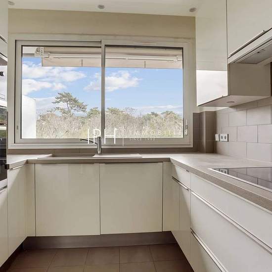 Au 3ᵉ étage d’un immeuble récent de grand standing avec ascenseur, découvrez ce superbe appartement de 126,09 m². L’appartement traversant, très lumineux, se compose : - d’une spacieuse pièce de réception avec vue sur le bois, - d’une cuisine indépendante aménagée et équipée, - de 2 chambres, - d'un bureau - d’une salle de bains avec WC, - d’une salle d’eau avec WC, - d’un WC séparé, - d’une buanderie. Un balcon filant entoure l’appartement et offre une vue imprenable sur le bois et la végétation environnante. Compléments : - Une cave - Une ...