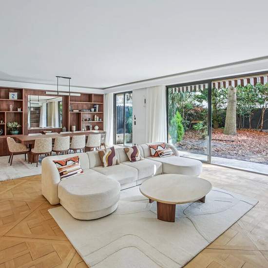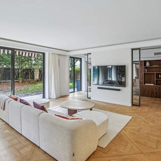 Exclusivité Parisearch Sur le Boulevard Maurice Barrès, découvrez ce très beau rez-de-jardin de près de 190 m², entièrement rénové par un architecte Il comprend une belle entrée qui mène à un double séjour lumineux ouvrant sur un jardin privatif de 200 m2. Vous y trouverez également une grande bibliothèque, un espace bureau, un coin repas et une cuisine dinatoire entièrement équipée ouvrant sur une jolie terrasse de 35 m2. L’espace nuit se compose de trois chambres, chacune avec sa propre salle de bain et ses rangements, garantissant confort...