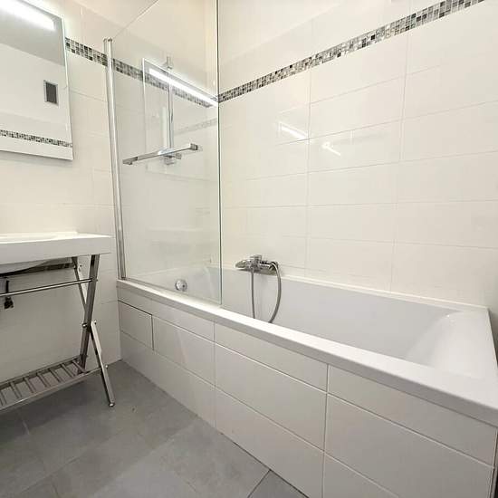 5-room apartment located on the 4th and top floor with elevator in the Résidence des Terrasses Baie des Anges in Nice. The residence features a swimming pool and a caretaker as well as a gym. The 116 m² apartment comprises a main entrance, a large living room with an open kitchen opening onto a balcony with sea view; a master suite with shower room and sea-view veranda; three other bedrooms also opening onto a balcony; and a bathroom with toilet. It is possible to rent a parking space within the condominium in addition to the rent.