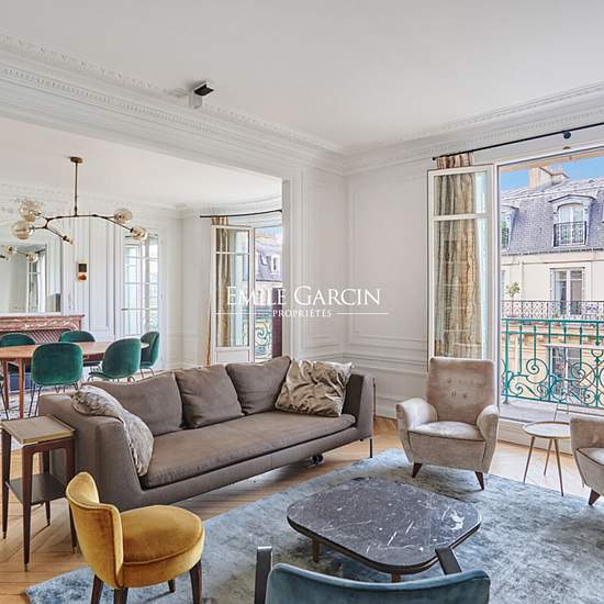 Situé au 5ème étage avec ascenseur d'un remarquable immeuble de 1912, sécurisé avec la présence d'un concierge. Cet appartement de 164 m² se compose d'une galerie d'entrée, d'une double réception ouvrant sur un balcon, d'une cuisine dinatoire aménagée et équipée, d'un bureau et d'un espace de travail. La partie nuit comprend une suite parentale avec dressing salle de bains et WC, une seconde chambre avec salle de bains (baignoire, douche et WC). Le bien dispose également d'un WC invités et une buanderie. Une cave complète ce bien. Loyer 11 0...