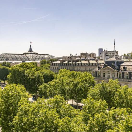 Situé au cœur du Triangle d'Or, sur la plus célèbre avenue de Paris, ce magnifique appartement de 145 m² (Carrez), entièrement rénové, occupe le 5ème étage d'un superbe immeuble haussmannien avec ascenseur. Baigné de lumière grâce à son exposition Sud-Ouest, il offre : - un vaste séjour de près de 50 m² ouvrant sur une terrasse de 30 m², avec une vue dégagée sur les toits de Paris et la Tour Eiffel, - une chambre de 30 m² sur cour, - une seconde chambre de 12 m² donnant sur la terrasse, - une salle de bains élégante (avec douche, baignoire e...