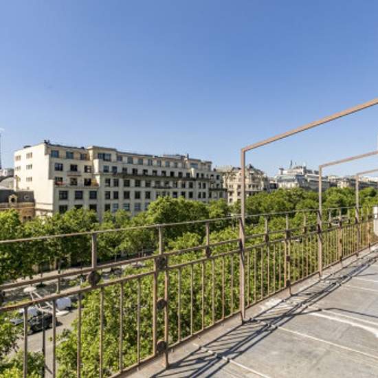 Situé au cœur du Triangle d'Or, en bas de la plus célèbre avenue de Paris, au niveau de la station de métro Franklin Roosevelt (lignes 1 et 9), ce magnifique appartement 4-5 pièces de 145 m² (loi Carrez), entièrement rénové, occupe le 5ème étage d'un superbe immeuble haussmannien avec ascenseur. Baigné de lumière grâce à son exposition Sud-Ouest, il offre : - un vaste séjour de 51 m² (dont un espace salle à manger attenant à la cuisine) ouvrant sur une magnifique terrasse de 33 m², avec une vue dégagée sur les toits de Paris, le Grand Palais...