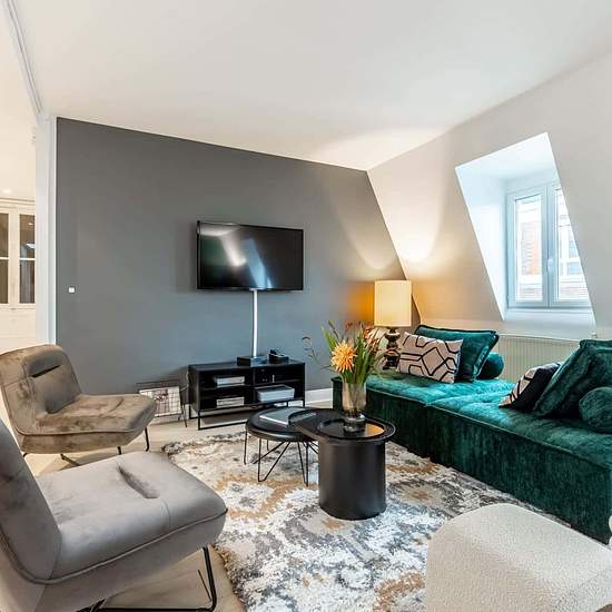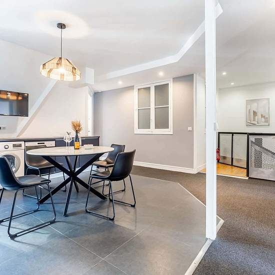 [EN] In the prestigious Champs-Elysées neighbourhood, the three-bedroom Ponthieu II Sweett apartment immerses you in Parisian glamour. With angled windows and soft colours, our local interior designer has created a magical, sunlit space. Whimsical surprises, such as a hanging swing and a chalkboard wall, are among this apartment’s many perks. A fully equipped kitchen gives you everything you need to master the art of French cooking. Located in the fashionable VIIIth arrondissement of Paris, this area offers easy access to exclusive shops and...