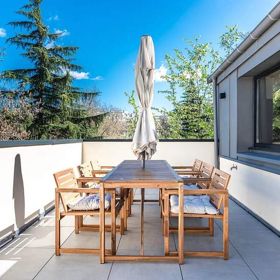 Au 2ème étage et 3 ème étage, un bel appartement meublé de 100m2 au sein d'un immeuble de standing. Proposé en location meublée. Ce bien est composé: d'une entrée, un séjour salle à manger, une cuisine toute équipée (réfrigérateur/congélateur, plaque de cuisson, hotte, four, four à micro-onde, lave-vaisselle), trois chambre parentale avec lit 160cm x 200cm, une chambre, une salle de bains avec un cabinet de douche et un wc séparé. Terrasse. Chauffage, eau chaude individuel.