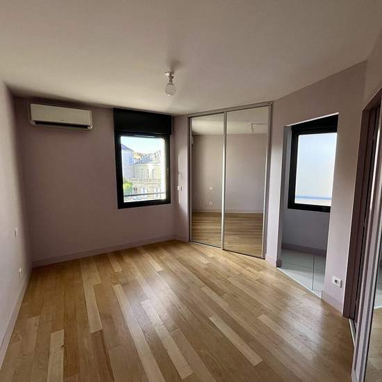 Appartement T5 situé au 2ᵉ étage d’une petite résidence calme avec ascenseur dans le centre ville de Périgueux.Il comprend un sas d’entrée, une pièce de vie avec placard ouverte sur une cuisine aménagée et équipée (réfrigérateur et congélateur encastré, four, micro-ondes, lave-vaisselle, hotte et plaque de cuisson), un cellier, un salon lumineux séparé. Une chambre avec accès terrasse et placard, une seconde chambre avec placard, une suite parentale avec salle d’eau et wc séparé et 2 dressing, une salle de bain avec baignoire et douche, un W...