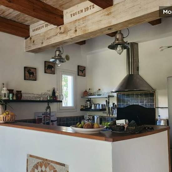 Top of the house F5 furnished-3 bedrooms + large mezzanine and extra bed (102m2 total), independent garden with trees, equipped guinguette style + bowling green-2 steps bus stop, town centre and shops. Available from 1/9/euros/month, cleaning package, holiday insurance required from the company. The property comprises - a veranda with large storage cupboards on either side - the entrance hall leads to: a corridor, a large bathroom with shower, bath, double washbasin, wc - a double bedroom, followed by a lounge and dining room an open-plan fi...