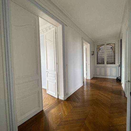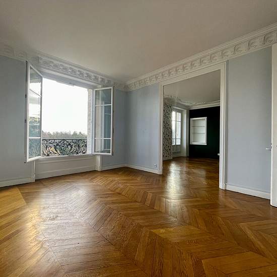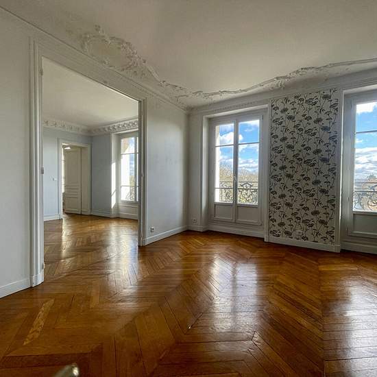 Saint- Mandé Chaussée de l'étang en lisière du bois de Vincennes coté Mairie et lac proche de tous commerces, transports et établissements scolaires. Au 4éme étage sans ascenseur d'un immeuble bourgeois de caractère très bel appartement familial traversant est -ouest de 104.78m2 carrez bénéficiant d' une vue imprenable et dominante sur le bois se décomposant comme suit: Entrée- Galerie, double réception, salle à manger, cuisine aménagée séparée, 3 chambres dont une plus petite ,salle de bains et un toilette indépendante. Belle Hauteur sous p...