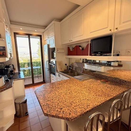 HAUTS DE VAUGRENIER - Dans la prestigieuse résidence des hauts de Vaugrenier avec piscine, tennis, gardien, restaurants, épicerie, magnifique appartement meublé de 4 pièces comprenant entrée avec escalier privé, séjour sur belle terrasse exposée Ouest, cuisine, buanderie, bureau, 3 chambres dont une avec salle de douche attenante, une salle de bains, wc indépendant, nombreux rangements. L'appartement dispose de très belles prestations, climatisation, parking privé. Chaque chambre dispose de placard. Disponible immédiatement. Afficher le télé...