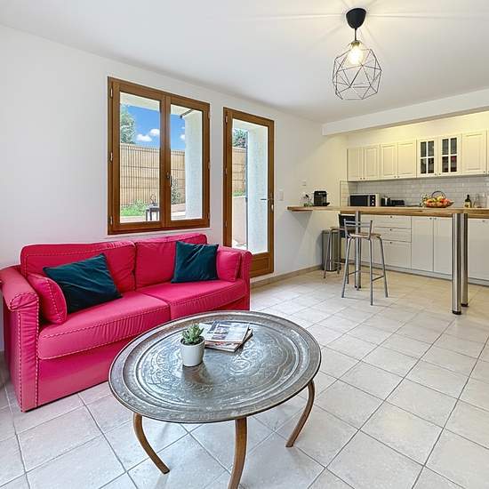 A stone's throw from the CREPS, in a sought-after residential neighborhood that is quiet and very well served, discover a property combining tranquillity, space and high-quality finishes. A strategic location: motorways a few minutes away, local shops (bakery, bus, amenities), and the historic city center of Aix-en-Provence quickly accessible. This private garden-level apartment of approximately 93 m², fully furnished, offers optimal comfort thanks to well-thought-out, light-filled spaces. The pleasant, air-conditioned living room opens onto...