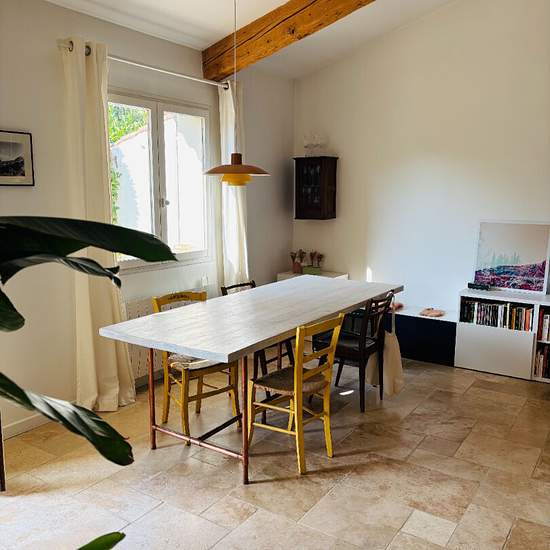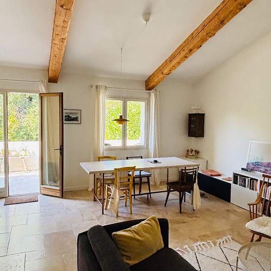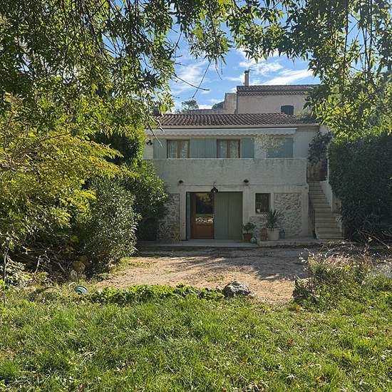 AIX LES MILLES Située dans le petit hameau de la mérindole, à quelques minutes du pole d'activités et de la gare TGV, maison de 113 m² sur deux niveaux, comprenant au 1er étage : un séjour cheminée et cuisine ouverte entièrement équipée, donnant sur une belle terrasse avec vue sur la verdure, deux belles chambres, salle de bains et wc. au rdc : un espace bureau / salle de jeu, une chambre d'appoint avec sa salle d'eau et wc, cave à vins, buanderie cellier. La maison dispose de deux places de parkings et d'un jardin privatif. Environnement tr...