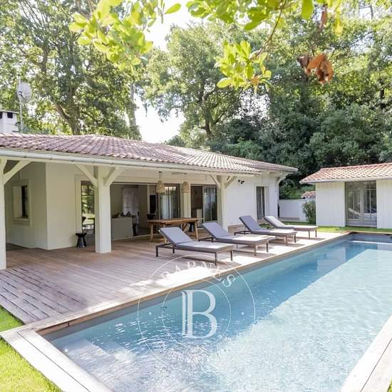 L'agence BARNES Arcachon vous propose cette élégante villa au style Ferret Capien à 3 minutes à pied de la plage Pereire à Arcachon. Entièrement rénovée avec soin et nichée à l'abri des regards, cette demeure est d'un calme absolu. De plain-pied, elle s'étend sur une surface de 140 m². Dès l'entrée, des placards facilitent le rangement de vos effets personnels. La maison principale offre une chambre avec sa salle d'eau attenante, et deux suites parentales. Dans la dépendance, une chambre avec sa salle d'eau offre également un espace privé et...