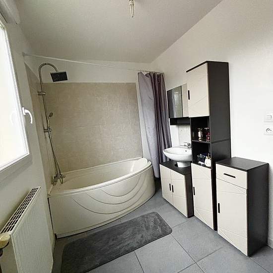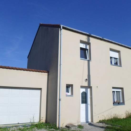 Maison semi-individuelle par garage comprenant au rez de chaussée: hall, wc avec lave-mains, cuisine équipée ouverte sur séjour, à l'étage: palier-3 chambres- salle de bains- garage avec coin buanderie- terrasse et terrain clos- chauffage central gaz-pvc double vitrage avec volet-DISPONIBLE AU 15 AVRIL- QUARTIER CALME PROCHE DU CENTRE