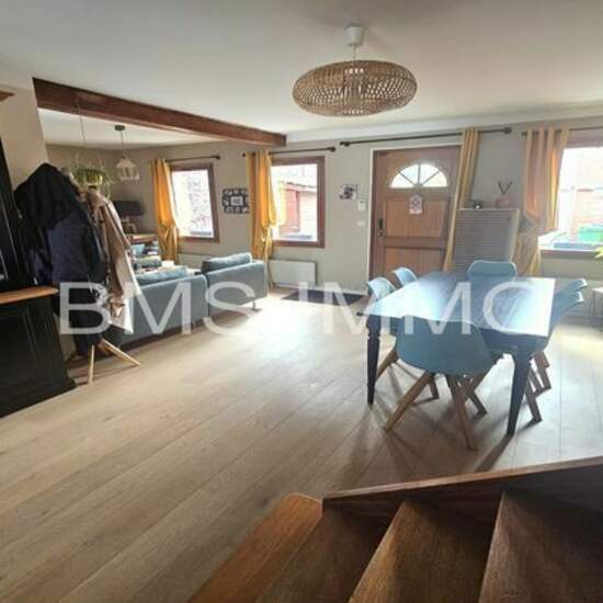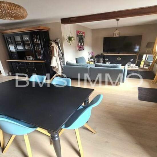 Location Meublée - Nous avons le plaisir de vous proposer à la location cette très jolie maison d'environ 95m2 située au coeur du village. La maison se compose au rez de chaussée d'une spacieuse pièce de vie de 32m2, ouverte sur une belle cuisine entièrement équipée de 17m2, d'une salle de bains avec douche et baingnoire, d'un cellier/buanderie et d'un wc. A l'étage, le palier dessert 3 chambres (9,13 et 15m2) ainsi qu'un bureau. Côté extérieur, vous trouverez une cour intérieur mais aussi un jardin avec terrasse et enfin une partie couverte...
