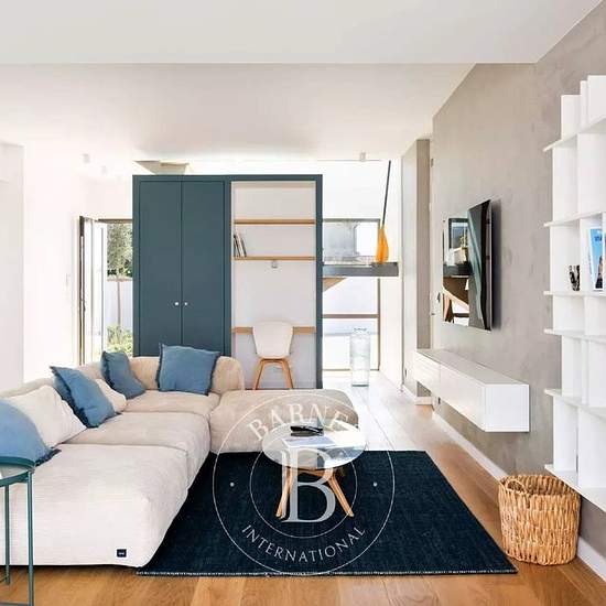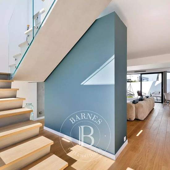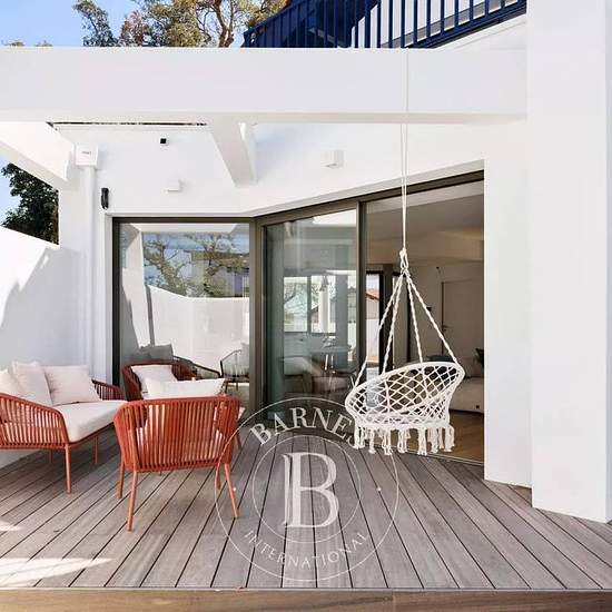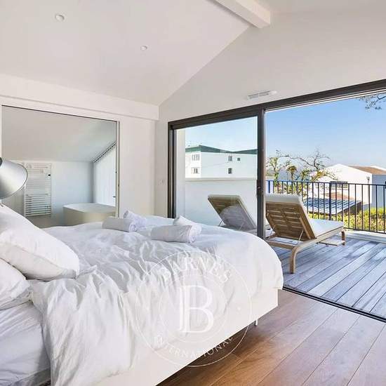 Située au cœur de Bidart, cette maison contemporaine de 135 m² offre un cadre de vie lumineux et fonctionnel. Le vaste séjour s’ouvre sur un salon cosy et une cuisine équipée. Deux terrasses complètent l’espace extérieur : l’une avec plancha, table et piscine chauffée, l’autre plus intime, côté salon. Le rez-de-chaussée comprend deux chambres (2 lits Queen Size – 2 lits superposés), dont une avec salle de douche privative, ainsi qu’une salle de douche et des toilettes séparés. À l’étage, la suite parentale (lit King Size) dispose d’un dressi...