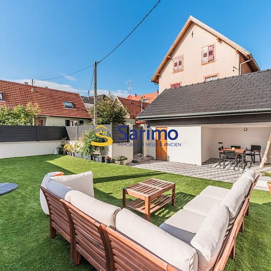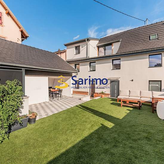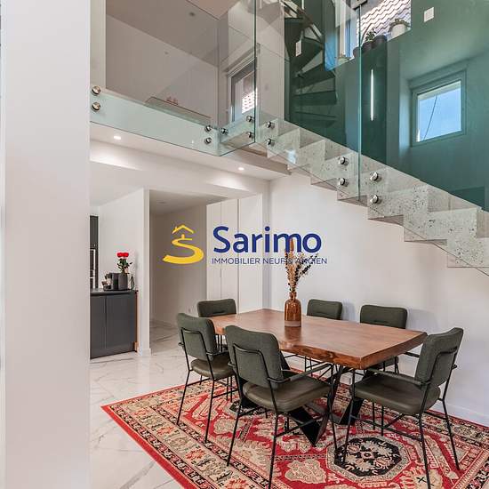 Offrez-vous un cadre de vie unique avec cette superbe maison 5 pièces de 130 m², entièrement rénovée en 2019 avec des matériaux haut de gamme. Située au cœur de Bischheim, à proximité immédiate de Strasbourg, cette maison mêle avec élégance charme, confort moderne et prestations haut de gamme. Description du bien : Niveau principal : Spacieux séjour-salle à manger de 55 m², baigné de lumière naturelle Cuisine américaine entièrement aménagée et équipée (four, plaques induction, hotte, lave-vaisselle...) Buanderie-cellier WC séparé 1er étage :...