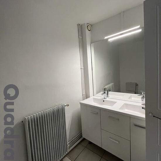 A LOUER- BOURGOIN JALLIEU ( 38300)- IDEAL BAIL MIXTE ou PROFESSION LIBERALE. Maison de ville, à 5 minutes de la gare à pied, à 10 minutes du centre ville à pied, entre la sortie 7 et 8 de l'A43, de type F5 sur 3 niveaux comprenant d'une surface de 105.84 m² au total avec 88.09 m² en surface utile : une entrée, un séjour avec coin cuisine aménagée avec banque, meubles bas et hauts, une pièce pour salon ou bureau donnant sur une impasse, un wc. Au 1er étage, 2 chambres, un bureau, une salle de douche avec WC, au 2ème étage , une grande chambre...