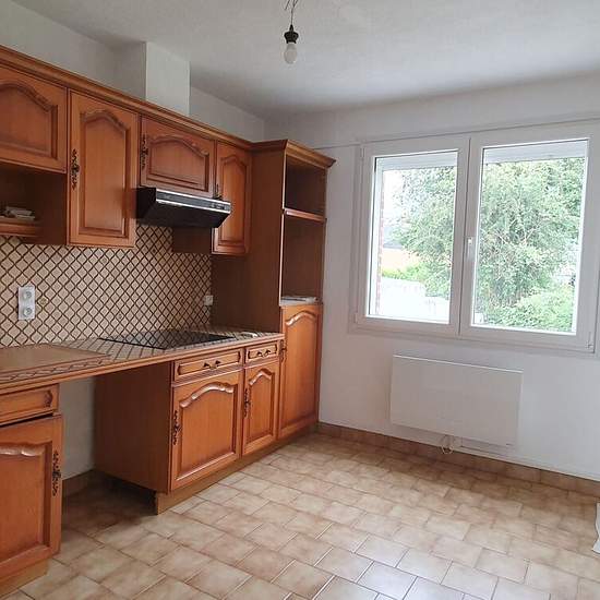 BOUSSOIS - Maison individuelle - 4 chambres - 750 euros. Disponible à partir du 19 Janvier. Elle comprend une entrée, une cuisine équipée (éléments de rangement, plaque de cuisson et hotte), un séjour avec un poêle à granulés, 4 chambres, une salle d'eau, et un garage Petit jardin à l'arrière de la maison.