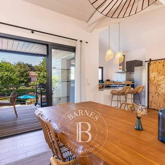 Idéalement située, la villa BLUE offre un cadre parfait pour des vacances sans voiture. À pied ou à vélo, explorez les plages, les boutiques et la forêt landaise. Avec ses grandes terrasses aménagées et sa piscine chauffée, équipée d’un jacuzzi intégré et d’une nage à contre-courant, elle est idéale pour profiter du plein air et partager des moments chaleureux en famille ou entre amis. La villa propose une spacieuse pièce de vie baignée de lumière, ouverte sur l’extérieur. Sa cuisine moderne et entièrement équipée est parfaite pour préparer ...