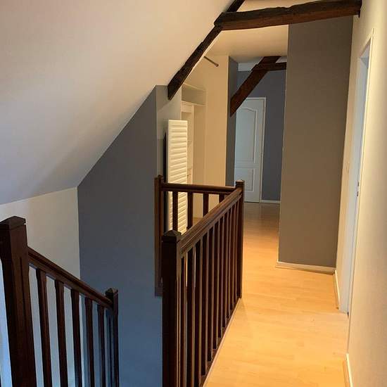 Maison individuelle en parfait état comprenant : entrée en salon avec poêle à granulés, séjour, une grande chambre au-dessus avec douche, lavabo et dressing, belle cuisine aménagée et équipée, wc, buanderie.A l'étage : trois chambres, salle de bains avec douche, baignoire et double vasque, wc. Au 2ème étage : une 5ème chambre. Abri de jardin, cour goudronnée devant, terrain derrière, le tout clos sur environ 1.120 m2. DISPONIBLE. Loyer CC : 1.113 EUR dont 1090 EUR de loyer principal, 13 EUR de prov/entretien poêle et 10 EUR de prov/entretien...