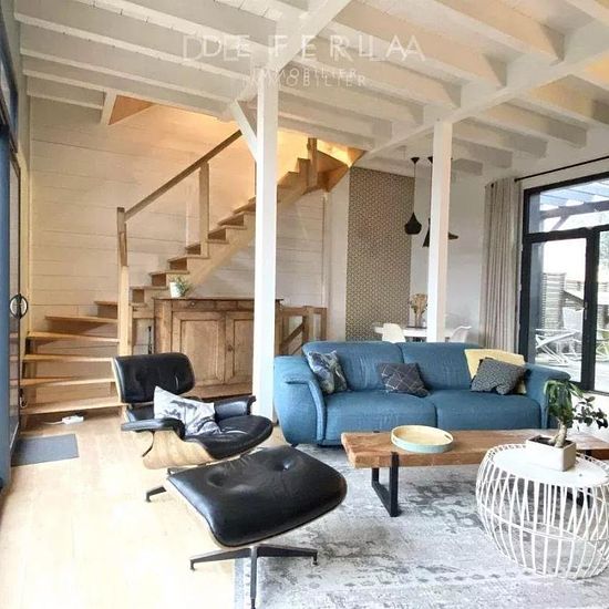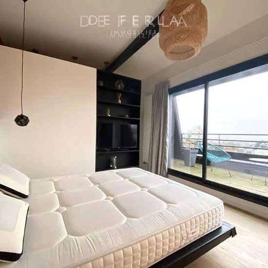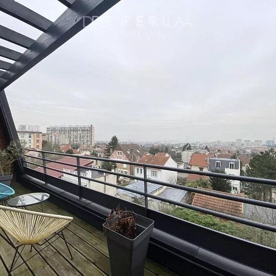 Maison architecte en bois au calme au fond d'une impasse, bénéficiant d'une vue sur Paris et la Tour Eiffel. Maison meublé de 165 m² sur 4 niveaux Rez de chaussée : grande pièce à vivre (salon, salle à manger, cuisine) ouverte de 47 m² avec 3m40 de hauteur sous plafond baignée de lumière par de de grandes baies vitrées donnant sur une terrasse et une cour pavée orientés sud et unegrande terrasse ainsi qu'un jardin au nord 1er étage : 2 chambres : une de 11 m² avec vue tour Eiffel et une de 10 m² avec terrasse privative. 1 Salle de douche et ...