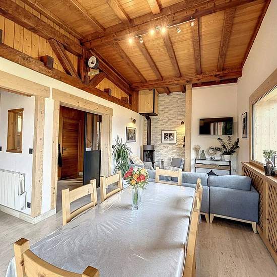 Situé à 2km du village de Combloux, chalet d'environ 130 m2 sur 1500 m2 de terrain avec une très belle vue Mont Blanc et la vallée, il se compose de : RDC 1 chambre avec lit en 160 accès jardin , 1 chambre avec lit en 140 + 2 lits gigognes, 1 WC, 1 salle de d'eau avec 2 douches , lave linge, RDJ : Cuisine ouverte sur séjour, grande terrasse et balcon , 1 WC, salle de douche, chambre avec lit en 160 accès balcon , chambre avec lit en 140. - A régler lors de votre arrivée : Taxe de séjour et caution logement par carte bancaire uniquement. Serv...