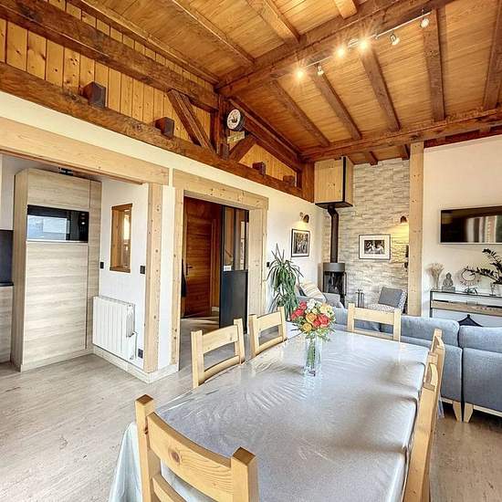 Situé à 2km du village de Combloux, chalet d'environ 130 m2 sur 1500 m2 de terrain avec une très belle vue Mont Blanc et la vallée, il se compose de : RDC 1 chambre avec lit en 160 accès jardin , 1 chambre avec lit en 140 + 2 lits gigognes, 1 WC, 1 salle de d'eau avec 2 douches , lave linge, RDJ : Cuisine ouverte sur séjour, grande terrasse et balcon , 1 WC, salle de douche, chambre avec lit en 160 accès balcon , chambre avec lit en 140. - A régler lors de votre arrivée : Taxe de séjour et caution logement par carte bancaire uniquement. Serv...