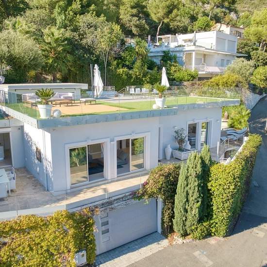 Découvrez cette villa moderne située à Éze bord de mer, à seulement 15 minutes de Monaco. Bénéficiant d'une vue spectaculaire à 180° sur la mer, d'une exposition sud et ouest et d'un cadre arboré, cette propriété de 180 m² sur un terrain de 800 m² offre un parfait équilibre entre luxe et tranquillité. Édifiée sur un terrain paysagé de 800 m², elle se déploie sur deux niveaux et propose de beaux espaces extérieurs, une piscine et un garage. Rez-de-jardin : Grand séjour lumineux, cuisine indépendante ouvrant sur la terrasse, cellier, chambre d...