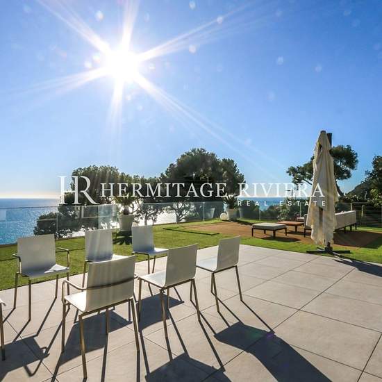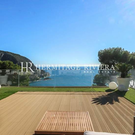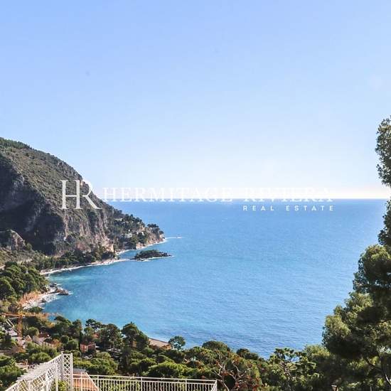 Location longue durée Villa à Èze-sur-Mer. Située dans un quartier résidentiel calme, sur les hauteurs d'Èze-sur-Mer, cette charmante villa entièrement rénovée offre une piscine, de belles terrasses ensoleillées et une vue imprenable sur la baie d'Èze. La villa comprend un hall d'entrée, un séjour lumineux, une cuisine équipée ainsi que trois chambres dont une chambre de maître avec vue mer et une autre en mezzanine. Un WC invités complète ce niveau. Au rez-de-jardin se trouvent une chambre supplémentaire avec salle de bains ainsi qu'un gara...