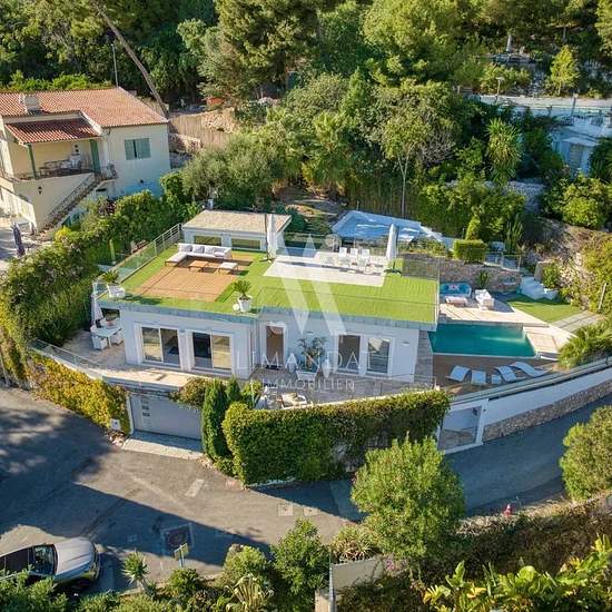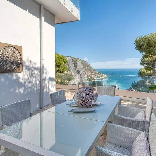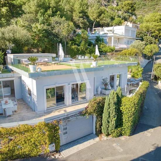 Découvrez cette villa moderne située à Éze bord de mer, à seulement 15 minutes de Monaco. Bénéficiant d’une vue spectaculaire à 180° sur la mer, d’une exposition sud et ouest et d’un cadre arboré, cette propriété de 180 m² sur un terrain de 800 m² offre un parfait équilibre entre luxe et tranquillité. Édifiée sur un terrain paysagé de 800 m², elle se déploie sur deux niveaux et propose de beaux espaces extérieurs, une piscine et un garage. Rez-de-jardin : Grand séjour lumineux, cuisine indépendante ouvrant sur la terrasse, cellier, chambre d...