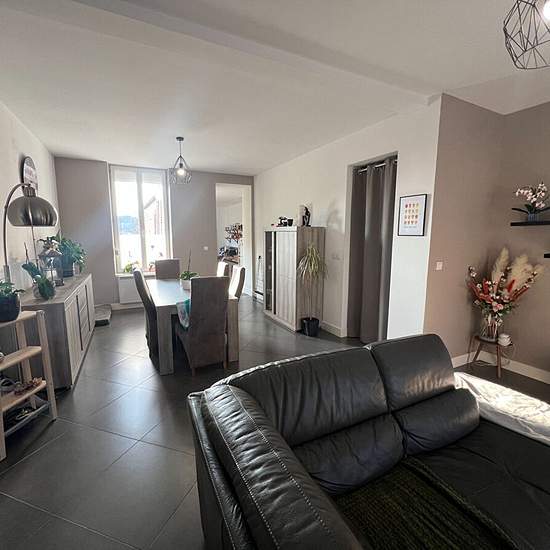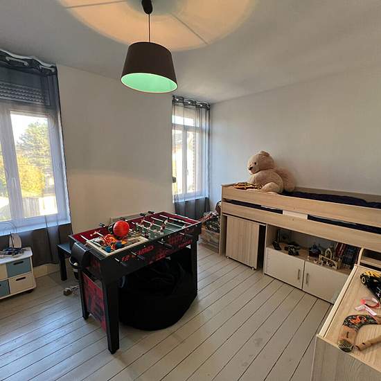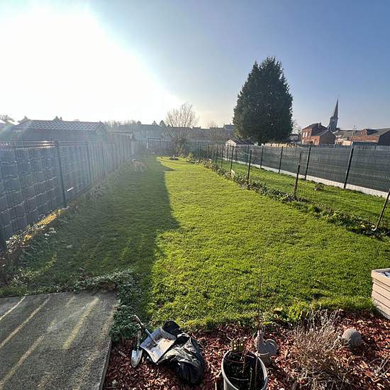 Maison semi individuelle en parfait état comprenant salon, salle à manger, cuisine semi-équipée, cellier et wc en RDC. Au 1er étage, 2 chambres et salle de bains avec wc. Au 2ème étage 1 chambre avec coin dressing et douche. Cave, remise, terrasse et terrain. Disponible au 19/10/2025
