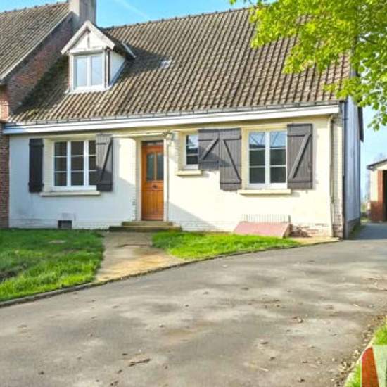 Fransures (80160) - Proche Conty ! Maison individuelle située dans un environnement calme et agréable ! Le Cabinet Immobilier Amiénois vous propose : Une maison de 90 m2 offrant 2 chambres, 1 bureau, 2 salles d'eau, un jardin ainsi que 2 garages. Elle se compose en rez de chaussée : - un séjour / salon d'environ 30m2 lumineux et spacieux - une cuisine séparée ( avec plaque, hotte et four ) - un bureau de 8m2 - une salle d'eau avec wc séparé A l'étage : - 2 belles chambres 14m2 et 20m2 au sol - 1 dressing - une salle d'eau avec wc L'ensemble ...
