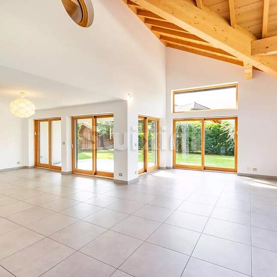 A propos de ce bien Réf : 2045AF: Sur la commune de GAILLARD, proche de la frontière Suisse et à 10 minutes d'Annemasse, magnifique villa d'architecte de type 5 (178.01m² loi carrez), dans un secteur résidentiel au calme, construite en 2015 et sur un terrain plat et arboré (environ 750m²). Ce bien d'exception, lumineux et moderne, sur 2 niveaux se compose de la manière suivante : A l'étage principal vous trouverez un grand séjour/salle à manger ouvert sur une cuisine équipée, le tout exposé au sud et donnant sur une belle terrasse, une suit...