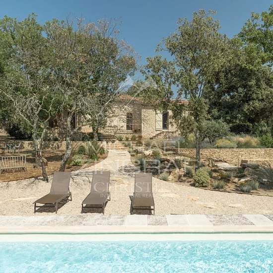 Ce joli mas provençal, tout proche du centre du village de Gordes, a été entièrement rénové avec goût et saura vous séduire par son confort moderne et son élégance discrète. Les espaces de vie y sont spacieux et lumineux avec une grande cuisine contemporaine ouverte sur le séjour, pour des moments de partage en famille ou entre amis. Trois chambres doubles confortables (dont une avec un canapé lit supplémentaire) et disposant chacune de leur salle d'eau peuvent accueillir jusqu'à 8 personnes. A l'extérieur vous profiterez d'une magnifique te...