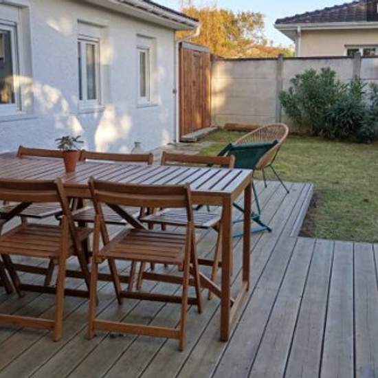 Location bail mobilité 1 a 10 mois Située à proximité des commerces et centre ville, la gare est à moins de 5 minutes en voiture. Arcachon 20mn. Maison meublée et équipée de 94 m2 avec jardin, terrasse avec pergola sur un terrain de 365 m2 Clôturée située au fond d une impasse sans vis à vis Salon, salle à manger, table 6 personnes, smart TV( Amazon Prime), canapé Cuisine équipée : table 4 chaises grand frigo SAMSUNG, plaques vitro céramique, four, micro onde, grille pain, bouilloire, cafetière Dolce Gusto, ustensiles de cuisine Etc... 4 cha...