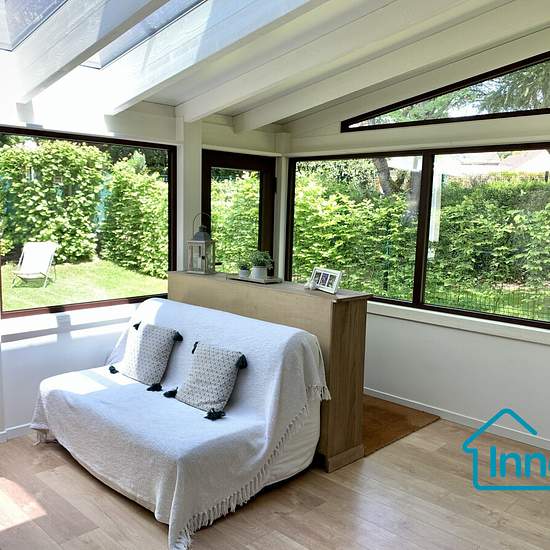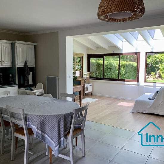 Située dans un environnement calme et verdoyant, cette maison de 104 m² se trouve dans une résidence fermée et sécurisée. Au rez-de-chaussée, vous trouverez : une entrée avec placards un cellier avec espace buanderie une grande pièce de vie lumineuse avec cheminée fonctionnelle une cuisine américaine équipée une véranda donnant sur le jardin un WC indépendant À l’étage : trois chambres avec placards intégrés et une salle de bains avec WC. Un box fermé complète ce bien + une place dans la résidence en accès libre. À proximité du centre-ville,...