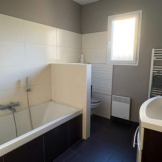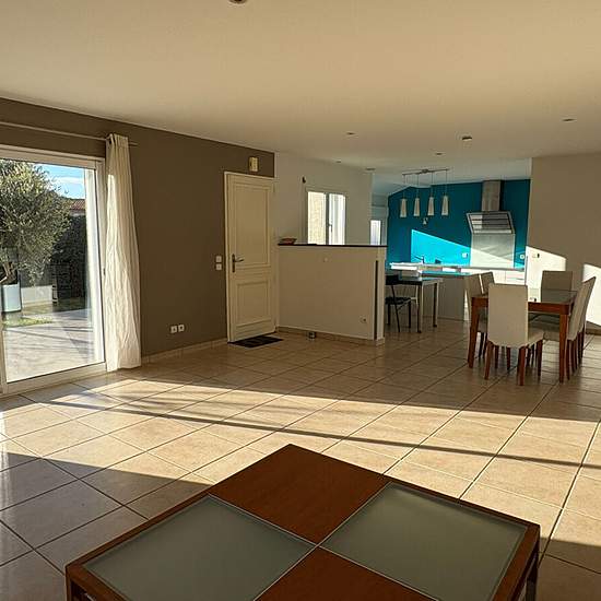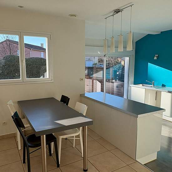 15 min de Bourg de Péage maison de plain pied comprenant cuisine équipée ouverte sur séjour/salon, 3 chambres, salle de bains avec toilettes. Sur terrain clos et arboré de 518 m². Chauffage individuel électrique et poêle à bois. Disponible de suite. Frais d'agence : 400 euros TTC. 1 mois de dépôt de garantie (1180 euros de loyer hors charges).