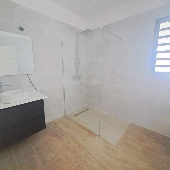 Quadran Immobilier vous propose cette villa en duplex de 128 m² dans un lotissement sécurisé et prisé de La Possession.Elle est composée :Au premier niveau : un sejour donnant sur une grande terrasse couverte, une cuisine américaine aménagée et semi équipée d'une plaque vitrocéramique 4 feux et une hotte, un cellier, deux chambres avec brasseur d'air et une avec un placard encastré, une salle d'eau avec douche à l'italienne et wc séparé.Au deuxième niveau : deux chambres avec brasseur d'air dont une avec une terrasse, une salle de bain avec ...