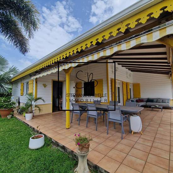LE FRANCOIS : Environnement privilégié pour cette villa de plain-pied F5 + mezzanine loué entièrement meublé à partir du 1ier Aout. Le séjour de 36m² ouvre sur une très belle terrasse en L de 34m² et son espace piscine (4mx8m) et Carbet d'où la vue mer est très agréable. Les 4 chambres sont toutes accessibles du séjour, 2 salles d'eau avec WC, une grande cuisine entièrement aménagée et équipée + buanderie. La mezzanine offre un espace ouvert complémentaire de 20m² au sol. Ecole maternelle, primaire privée proche. Couvent accessible en bus, o...