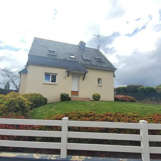 À 5 min du centre de pontivy, maison comprenant salon / séjour avec cuisine aménagée et équipée, une chambre, salle d'eau et un wc. Au 1er étage : 3 chambres, 1 salle de bains, un wc garage, jardin clos et terrasse. Chauffage gaz de ville. Libre de suite.