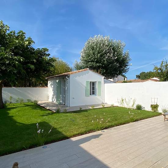 Maison entièrement rénovée avec jardin, à 4 minutes des commerces, du centre du village et de la plage. Surface habitable de 130 m² sur terrain de 300 m² : -Grande pièces à vivre de 55 m² comprenant cuisine aménagée avec îlot central, grand salon et un espace repas donnant sur la terrasse -Trois chambres (dont une à l'étage) avec chacune lit 2 lits de 80, grands placards, penderie et étagères -Une salle de bains avec toilettes, une salle de douche de douche, toilettes indépendants -Dans le jardin, une chambre indépendante avec lit double de ...