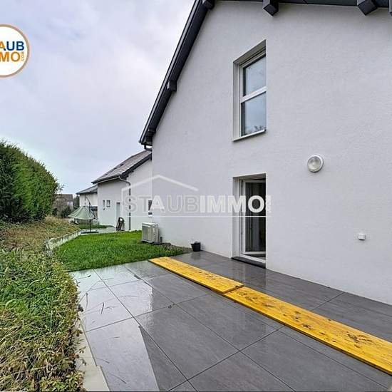 Leymen, Maison neuve de 101 m² habitables. Location Leymen, découvrez cette maison neuve de 101 m² comprenant au premier niveau une entrée, une pièce aménagée en bureau, un garage double et une chaufferie. Au deuxième niveau, découvrez une cuisine aménagée et équipée, ouverte sur un salon-séjour lumineux, donnant accès à la terrasse et au jardin, un cellier et un WC séparé. Au troisième niveau, vous trouverez 3 chambres à coucher ainsi qu'une salle de bains avec douche, baignoire et wc. Disponible à partir du 01/02/2026 Loyer 1 950€. Forfai...