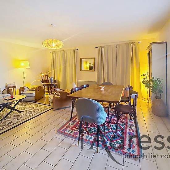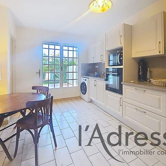 Within this exceptional setting, enjoying a FULL VIEW OF THE GOLF COURSE, you will be delighted by this charming 5-room, 134 m² villa benefiting from spacious terraces ideal for entertaining and summer evenings with family or friends. Over two levels, on the ground floor you will find a spacious living room, an independent kitchen with its pantry, a bedroom/office, a shower room with WC and a storage room. Upstairs, a bathroom with WC, three bedrooms with built-in closets, one of which has its own bathroom with WC. The three bedrooms open ...