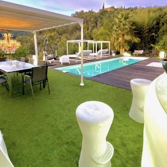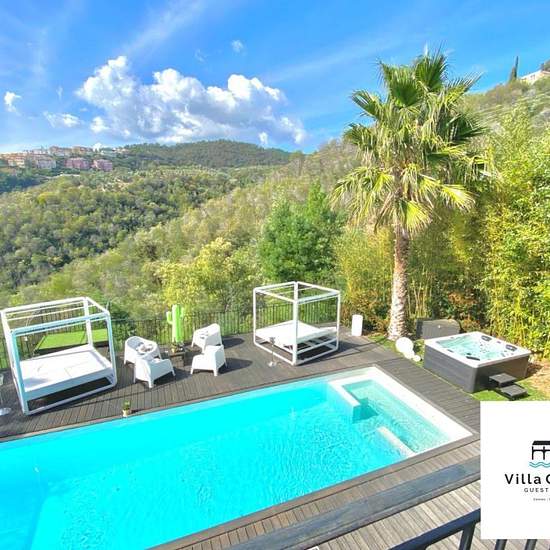 Maison de 155 m² à louer sur mandelieu-la-napoule cannes-mandelieu. Loue très belle villa meublée moderne pour 8 personnes maximum (famille exclusivement). Piscine de 12 mètres (possibilité de la chauffer) et spa extérieur. Vue imprenable sur la forêt de l'estérel. Très calme. 4 chambres et 4 salles de bain. Grand séjour en open space avec cuisine équipée et aménagée, salle à manger et salon. Grand jardin tout équipé avec daybeds, barbecue, transats. Jardin très bien éclairé. Couché de soleil chaque soir. 4 places de stationnement. Pas de vi...