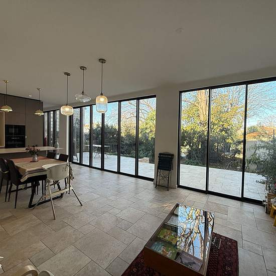 Rare à la location . Cette maison avec piscine et grand jardin entièrement meublée offre un cadre de vie privilégié, idéal pour une famille. Elle est implantée sur un terrain de 481 m² au calme dans une impasse . Au rez-de-chaussée, l'entrée s'ouvre sur un petit salon chaleureux équipé d'un poêle. Une grande salle à manger avec cuisine ouverte, aménagée et entièrement équipée, donne directement accès à une grande terrasse de 49m2, au jardin arboré, une piscine et une serre. A ce niveau se trouvent également une chambre, une salle d'eau, un W...