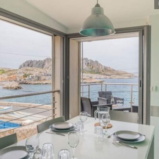 Maison à louer jusqu'en juin 2026 avec doubles terrasse offrant une vue exceptionnelle sur la mer et les collines, entièrement équipée, dans un cadre paisible, naturel et dépaysant. Possibilité de colocation et animaux acceptés sur demande. Située les pieds dans l'eau et le massif des Calanques dans le village des Goudes. Face à la mer avec une vue magnifique sur le cap Croisette et la rade de Marseille, cette maison moderne se situe à l'entrée du village des Goudes. A 20 mn du centre ville de Marseille, à proximité immédiate du cœur du vill...