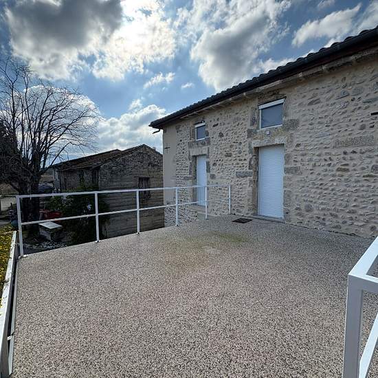 A louer, charmante maison en pierre entièrement rénovée située avenue du Vercors à Montélier. Cette ancienne bâtisse combine le charme de l'ancien et le confort moderne. Elle se compose d'une grande pièce de vie lumineuse en duplex avec cuisine ouverte et équipée, de trois chambres spacieuses, d'une salle d'eau moderne avec douche à l'italienne et baignoire, ainsi que d'une buanderie. L'extérieur comprend une cour privée et un abri de jardin avec un espace de stationnement pour plusieurs véhicules, une terrasse. Le chauffage est alimenté par...