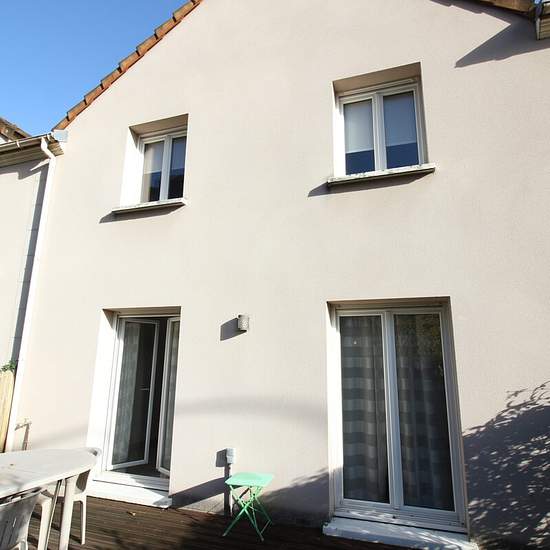 ** Exclusivité L'Art2VendreImmobilier ** Location meublée MONTGERON Dans lotissement familial proche Pelouse et Lycée de Montgeron à 10 min à pied , RER D accessible par bus 4112/4115 , Maison récente ( France Pierre 2004) composée au rez-de-chaussée : couloir d'entrée, cuisine entièrement équipée et aménagée, salon séjour agréable avec accès terrasse exposée Ouest, wc avec lave-mains, garage avec porte motorisée et coin buanderie L'escalier menant au 1er étage s'articule en palier desservant 3 chambres, grande pièce dressing pouvant être co...