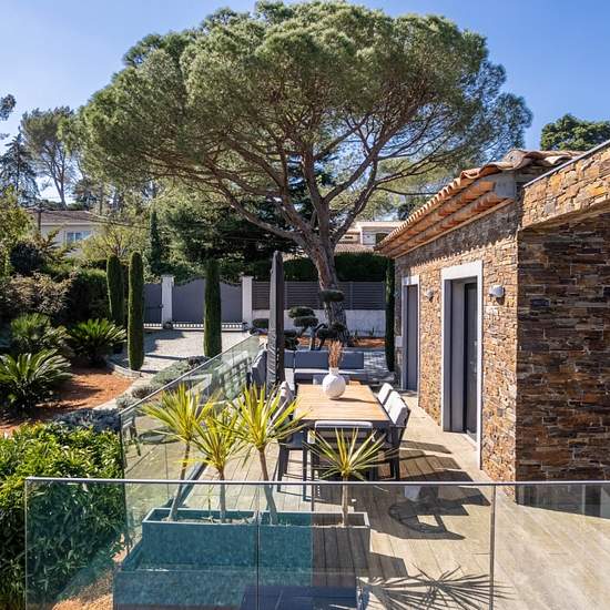 Située sur la commune de Mougins dans un domaine très recherché sécurisé à proximité de Mougins Business School et du Golf Country Club Cannes-Mougins, cette villa vous offre un cadre de vie exceptionnel. La villa à été entièrement rénovée et dispose de prestations de très haute qualité , d'un espace à vivre bénéficiant d'une belle hauteur sous plafond avec poutres apparentes, d'une cuisine ouverte entièrement équipée ainsi que de 4 chambres avec 3 salles de douches et un bureau. Les espaces de vie sont complétés par un espace extérieur luxu...
