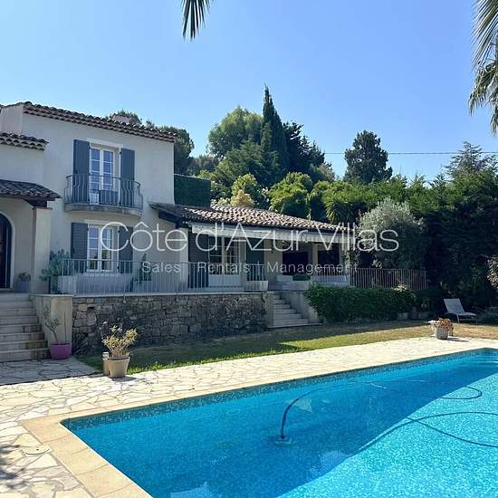 Disponible du 7 janvier 2026 au 15 mai 2026 Située dans un quartier résidentiel calme de Mougins, à proximité immédiate de toutes les commodités, cette villa mitoyenne d’environ 210 m² offre un cadre de vie confortable et agréable. La maison se compose : À l’étage : une suite parentale avec dressing et salle de bain, espace bureau et terrasse Au rez-de-chaussée : un grand salon/salle à manger, une cuisine équipée, deux chambres en suite avec salle de bain et placards Au niveau de la piscine : un studio indépendant avec kitchenette et salle d...
